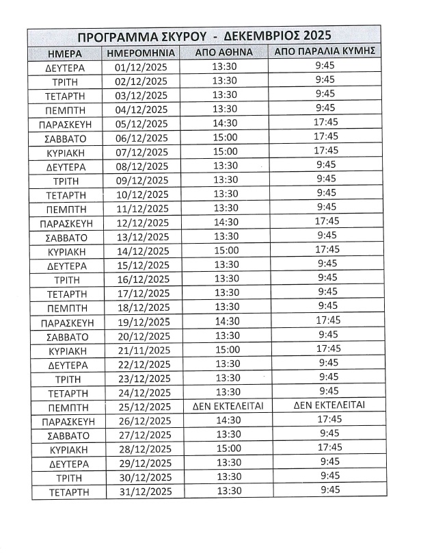 - Πρόγραμμα για πεδιό Σκύρου Δεκεμβρίου 25. (Δείτε εδώ)